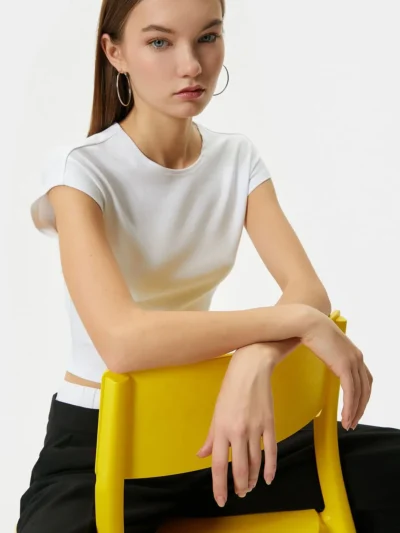 Short-Fit Sporty Round Neck T-shirt – White