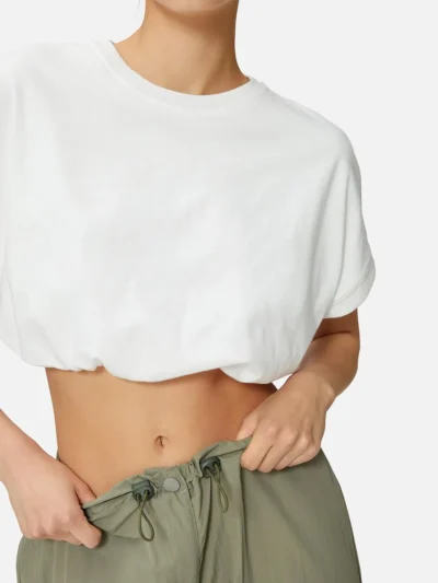 Elastic Waist Cotton Short T-shirt - White quantity